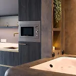 A Suite-Elegance Prive Sauna & Jacuzzi vendégei számára rendelkezésre áll tornác és ülősarok klímaberendezéssel. Élvezze az apartman hajszárítóval, törölközőkkel és papucsokkal felszerelt fürdőszobájának kényelmét. Spa kád, pezsgőfürdő és külön WC is található.